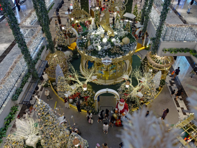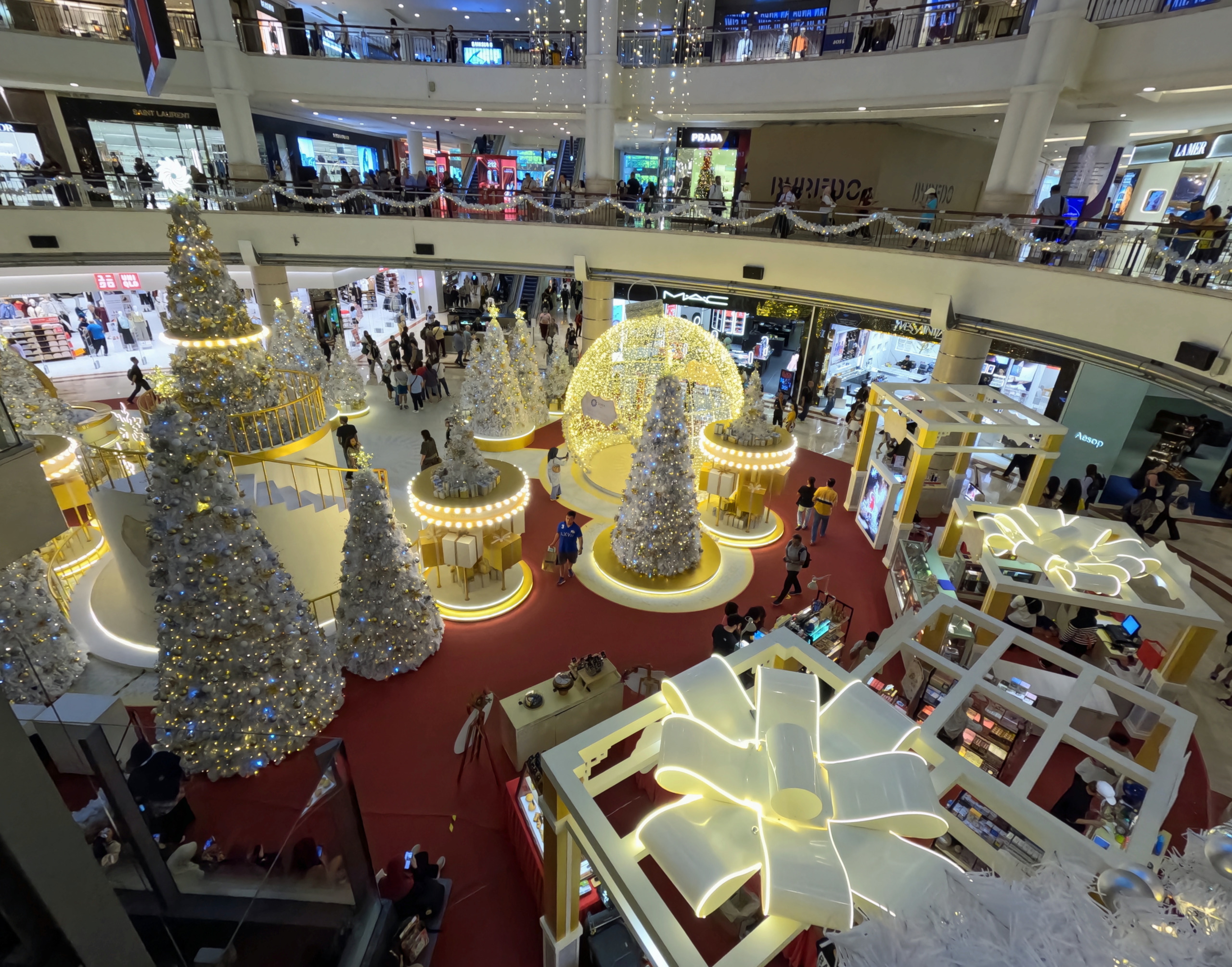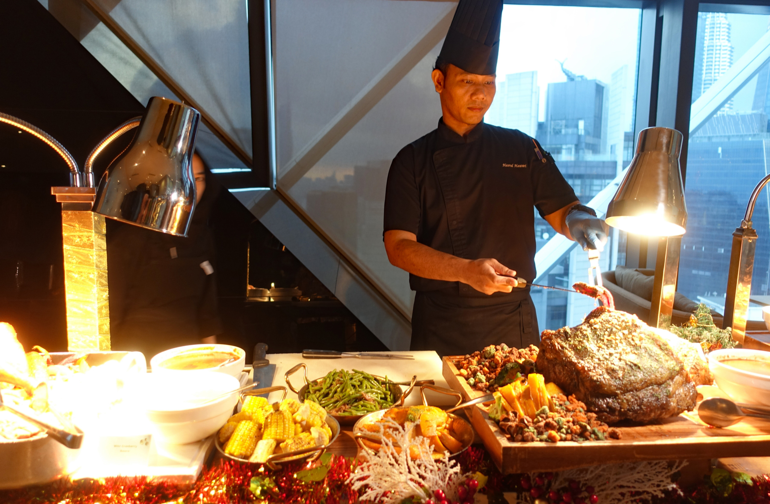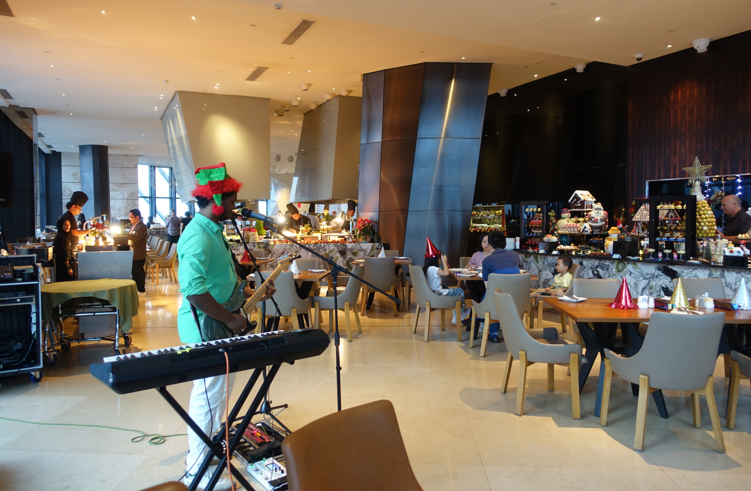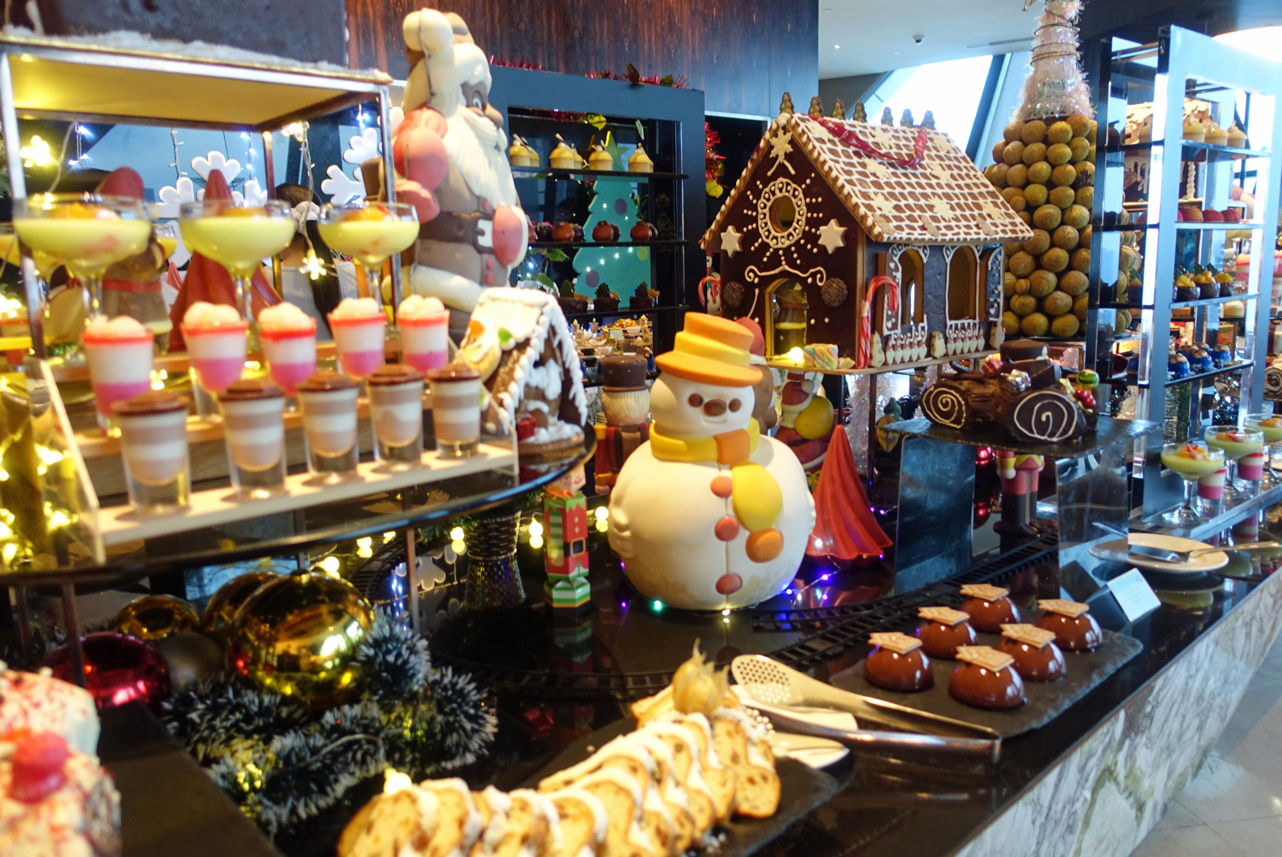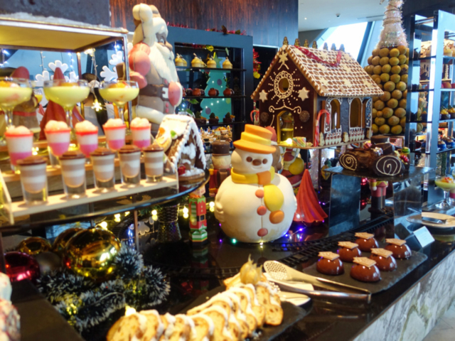 KL malls really go over the top with Christmas decorations and it was fun to check out a few of the displays, even the Petronas Towers were lit up in festive colors. For our holiday celebration we booked a Christmas Eve dinner with James & Tracey at Trace Restaurant on the 40th floor of the Element Kuala Lumpur hotel. The buffet was stunning and we had some beautiful views over the city.