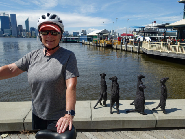 On the recommendation of an Aussie friend we took the bus from our apartment to Point Fraser and rented bikes from About Bike Hire to cycle the 10 km loop around the Swan River.  It was a fabulous ride along both sides of the river with many places of interest to stop and admire the views of downtown Perth.  Our 2 hour rental cost $20 AUD (USD $13) each.  Electric bikes are available but the cycle path is pretty flat so a regular bike was fine.