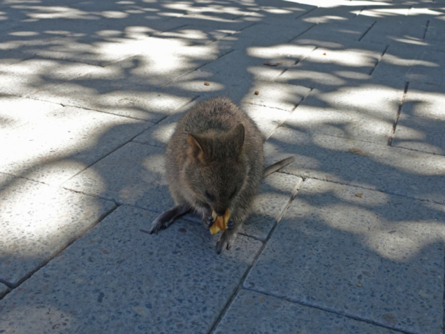 One of the most popular things to do while in Perth is take a ferry over to Rottnest Island, a stunning and protected nature reserve just off the coast.  It’s famous for pristine beaches and unique wildlife, especially the adorable quokka.  What the heck is a quokka?  They are a small wallaby-like marsupial native to Western Australia.  We thought they looked like a cross between a wallaby and a rat looking at their tail.  In fact, that is how Rottnest Island got its name when Dutch explorers mistook the quokkas for large rats and named the island Rottnest, meaning Rats Nest, Island.  Quokkas are friendly and curious and they were abundant around the restaurants near the pier.  We booked our ferry trip with SeaLink leaving from the Barrack Street Jetty in Perth.  The journey took 90 minutes, 60 of which were cruising down the Swan River until we reached Fremantle and then 30 minutes across the ocean to Rottnest Island.  Return tickets cost $136.50 AUD (USD $88.95) each.  This includes the AUD $21 (USD $13.70) island admission fee.