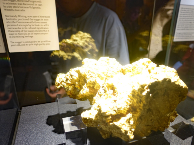 The Perth Mint was established in 1899, created to refine gold from the Western Australian gold rushes and mint gold sovereigns for the British Empire.  Between 1899 and 1931 the mint struck over 106 million gold sovereigns until Britian abandoned the gold standard in 1931.  Ownership of the mint was transferred to the Government of Western Australia in 1970.  Today the Perth Mint produces a wide range of products for investors and collectors with very high standards of purity.  They still refine a significant portion of Australia’s gold and silver, as well as metals from across the Asia-Pacific region.  The Perth Mint is also home to the world’s largest, heaviest and most valuable gold coin.  The one metric tonne gold coin was created in 2011, weighs 1,012 kilograms and has a nominal face value of $1 million AUD, although the bullion value on the day we visited was just over $202 million AUD.  There are also a few very large gold nuggets on display and a $2 million AUD gold bar which we could get our hand on.  It was also very interesting to watch a live gold pour, creating a solid gold bar.  All in all, its a pretty interesting place to visit.  Tickets for a one hour tour cost $25 AUD (USD $16.35) each.