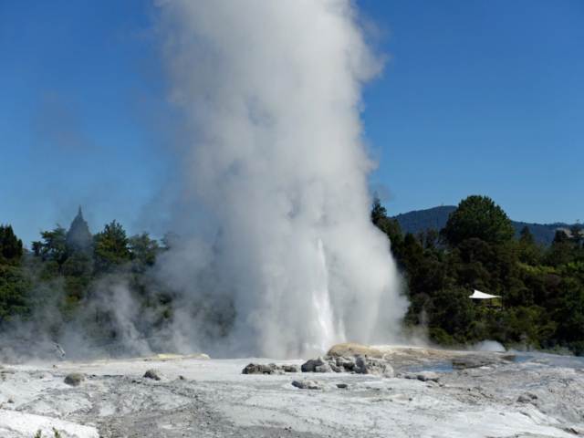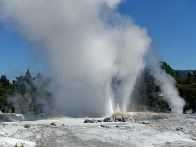 Pōhutu Geyser is the largest active geyser in the Southern hemisphere, erupting up to 20 times a day and reaching heights of 30 meters. The geyser is located in the Te Puia Geothermal Park and the cost to go on a 90 minute guided tour is NZD $100 (USD $61.88) each. Other than the geyser the tour includes a visit to the mud pools, the Kiwi Conservation Center, a tour through the Maori Arts & Crafts Institute and a 30 minute cultural performance. Once the tour is over you are free to walk about the grounds for as long as you want. We missed seeing the geyser erupt during our tour so we went back and waited for the next eruption.