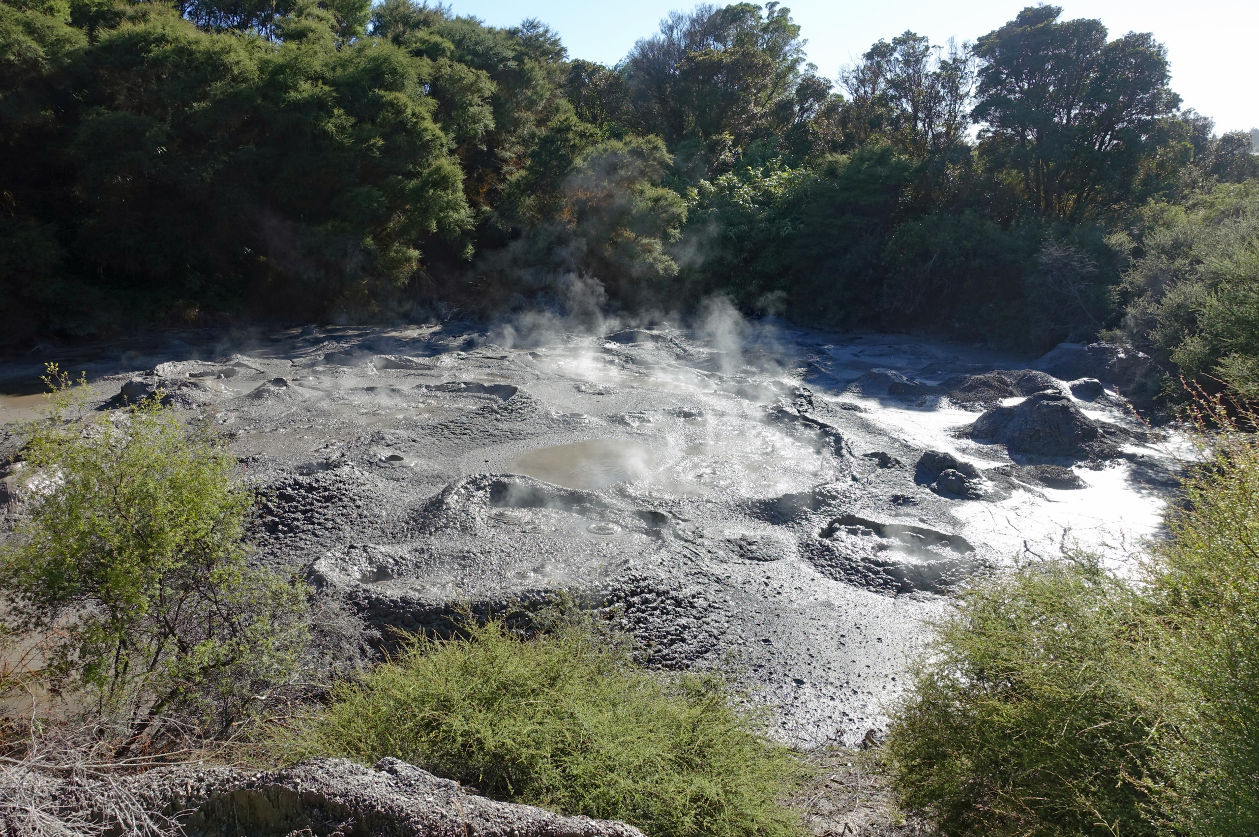 Although we have been here before it was fun to re-visit some of our favorite places and add in some new experiences. The first place we returned to was Kuirau Park in the heart of the city. It is a large public park with bubbling mud pools, steaming lakes and a foot bath where we gingerly dipped our toes in the steaming hot water.