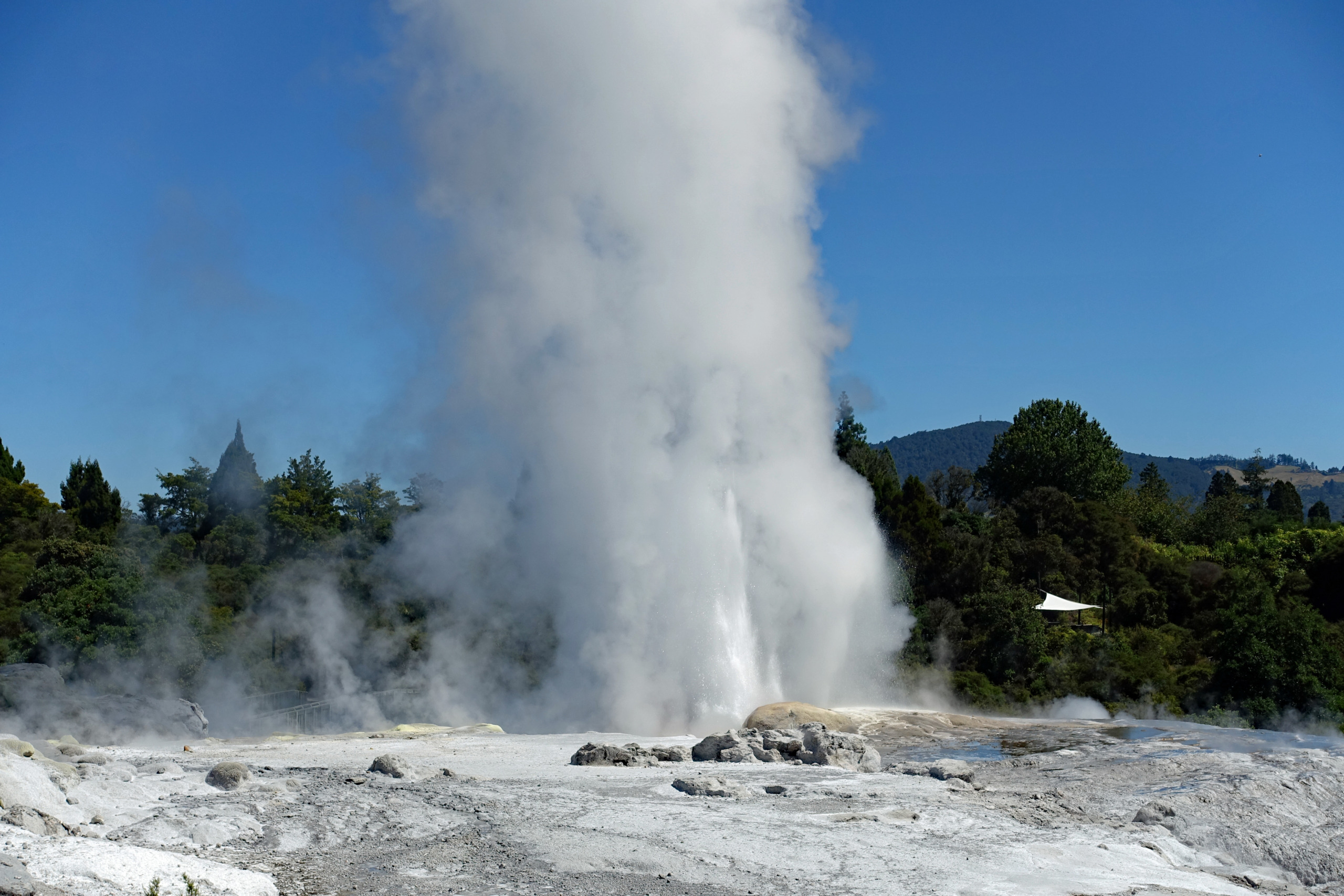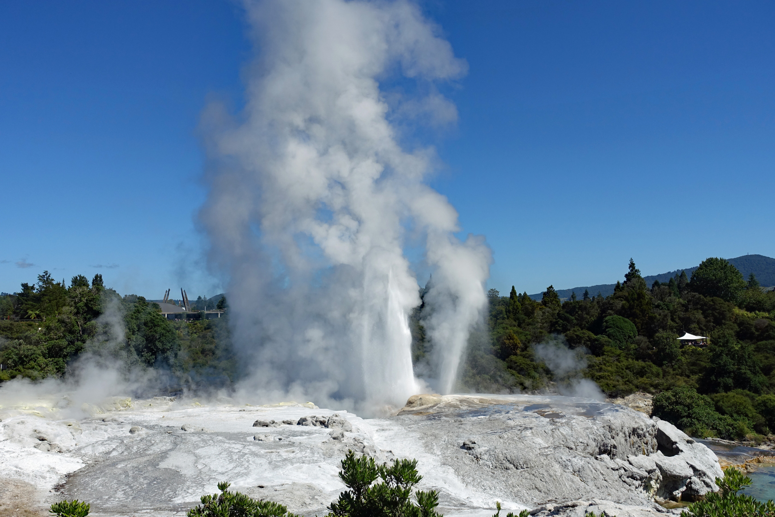 Pōhutu Geyser is the largest active geyser in the Southern hemisphere, erupting up to 20 times a day and reaching heights of 30 meters. The geyser is located in the Te Puia Geothermal Park and the cost to go on a 90 minute guided tour is NZD $100 (USD $61.88) each. Other than the geyser the tour includes a visit to the mud pools, the Kiwi Conservation Center, a tour through the Maori Arts & Crafts Institute and a 30 minute cultural performance. Once the tour is over you are free to walk about the grounds for as long as you want. We missed seeing the geyser erupt during our tour so we went back and waited for the next eruption.