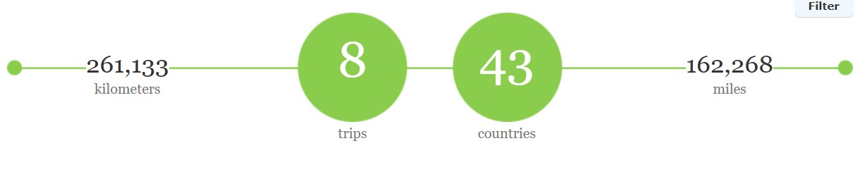 If you know me, you know I love numbers so here are some of the most recent details. Over the past 8 years we have traveled 261,133 km/162,262 miles through 43 countries.