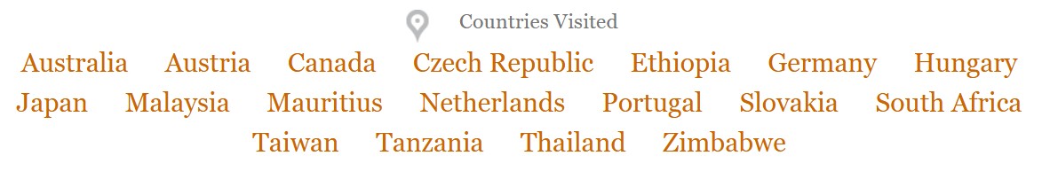 | Countries visited | 16 | 11 | 15 | 5 | 3 | 3 | 11 | 12 |