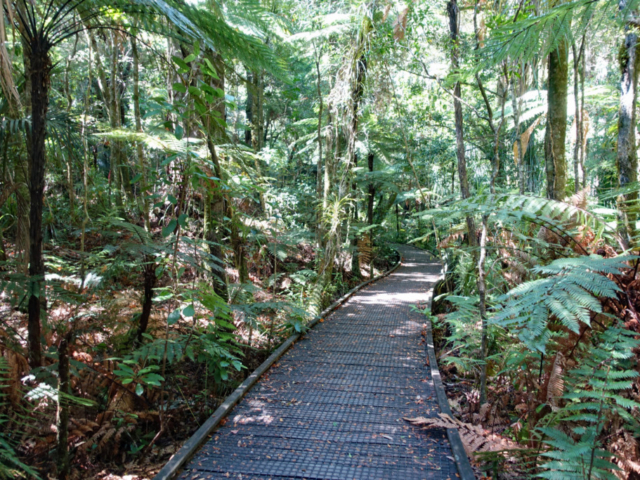 The Kauri Walk is a short, elevated path through a world of giants. Here in the Puketi Forest, the Kauri trees rise like ancient monuments, their wide trunks reaching towards the clouds. The Kauri tree is among the largest and longest-living tree on earth and while not the tallest, they are famous for their massive, cylindrical trunks that do not taper as they grow. They can reach over 50 meters in height with trunk girths exceeding 15 meters. Kauri’s can live for over 2,000 years and some that are alive today were saplings during the Roman Empire. In the 1800’s, European settlers prized Kauri for its straight, strong, and rot-resistant timber, ideal for ship masts and construction.