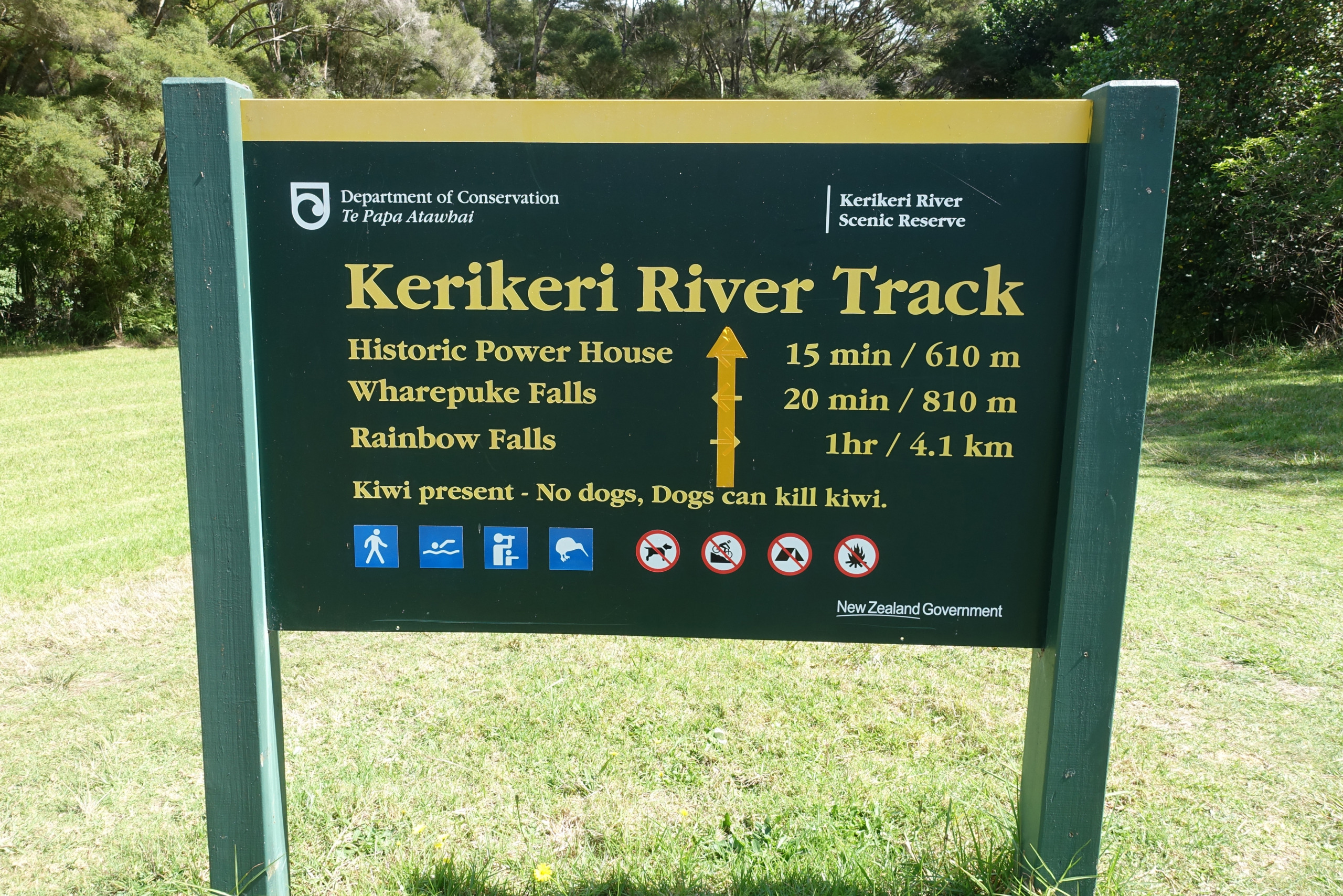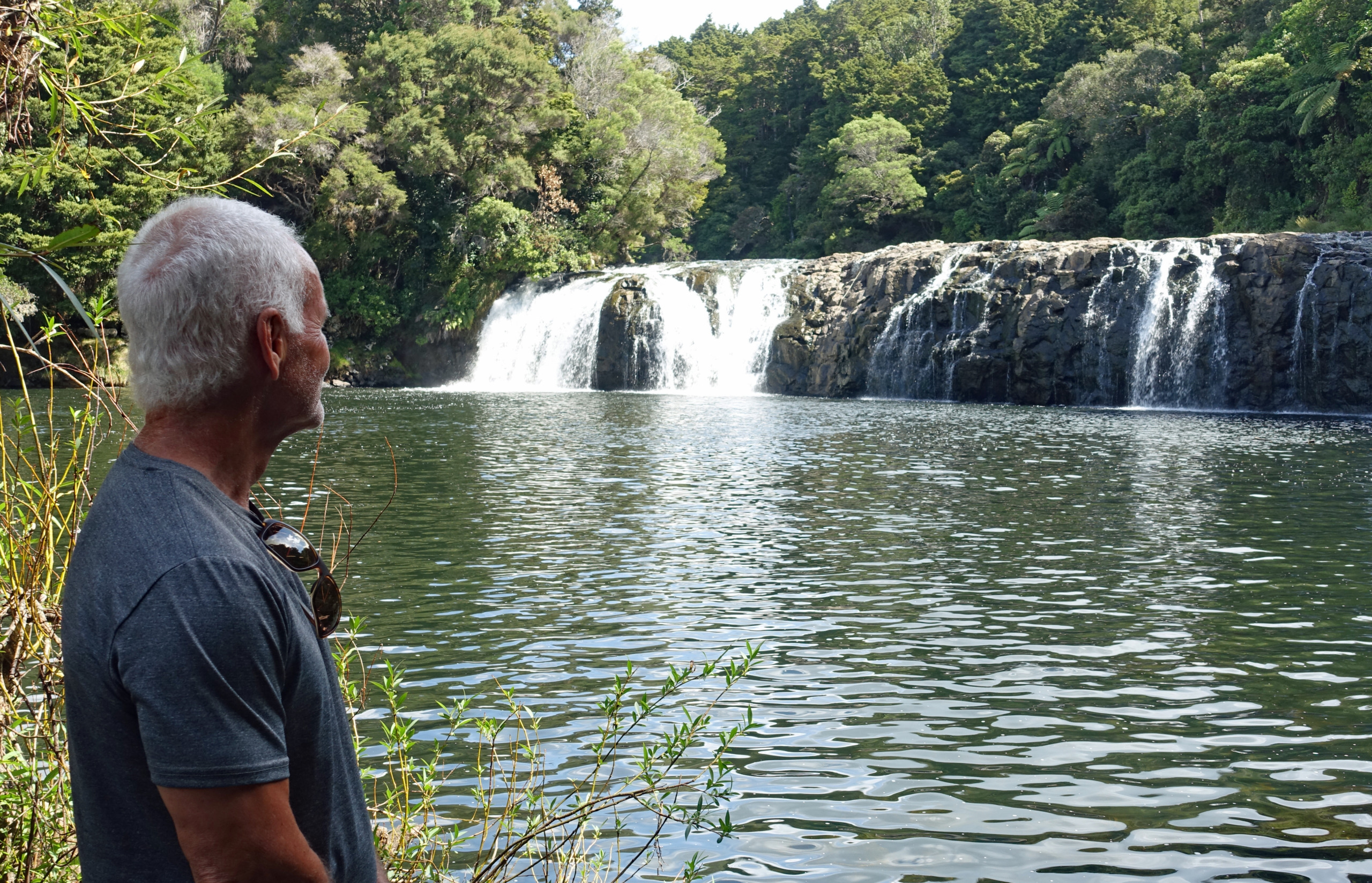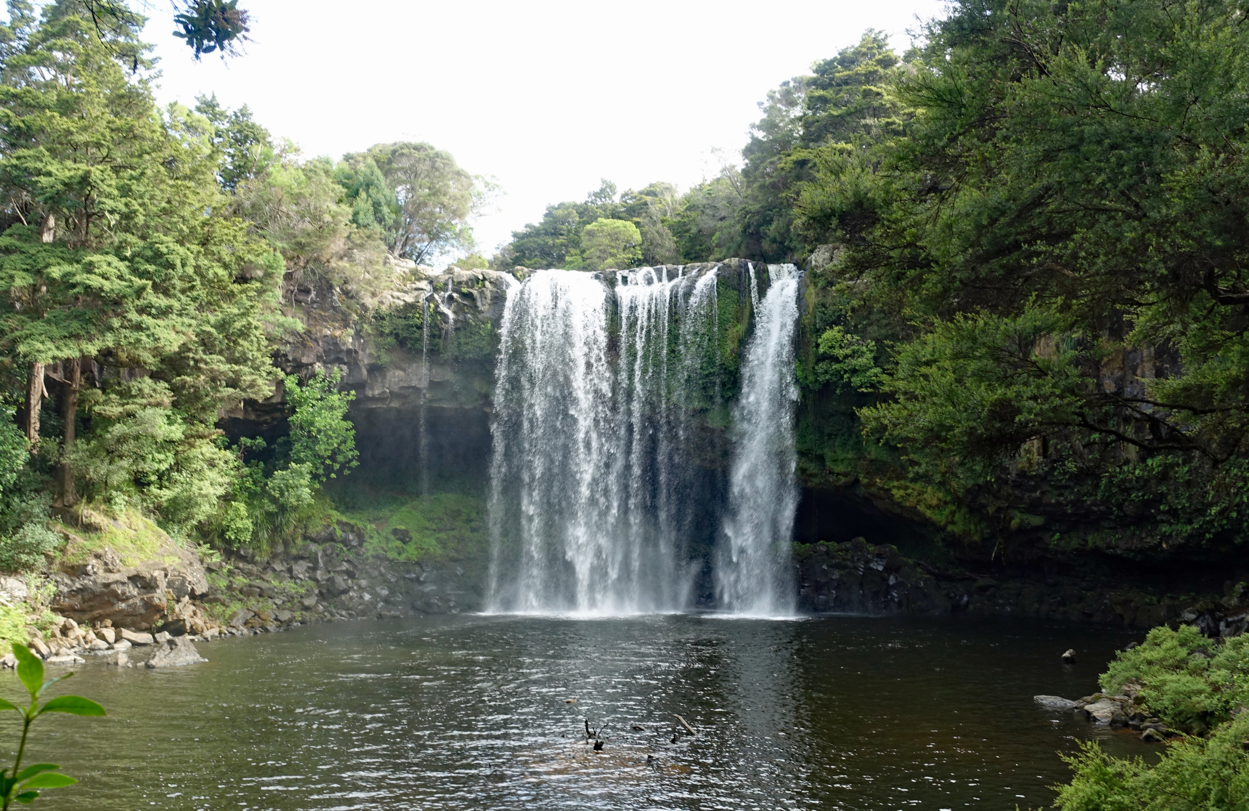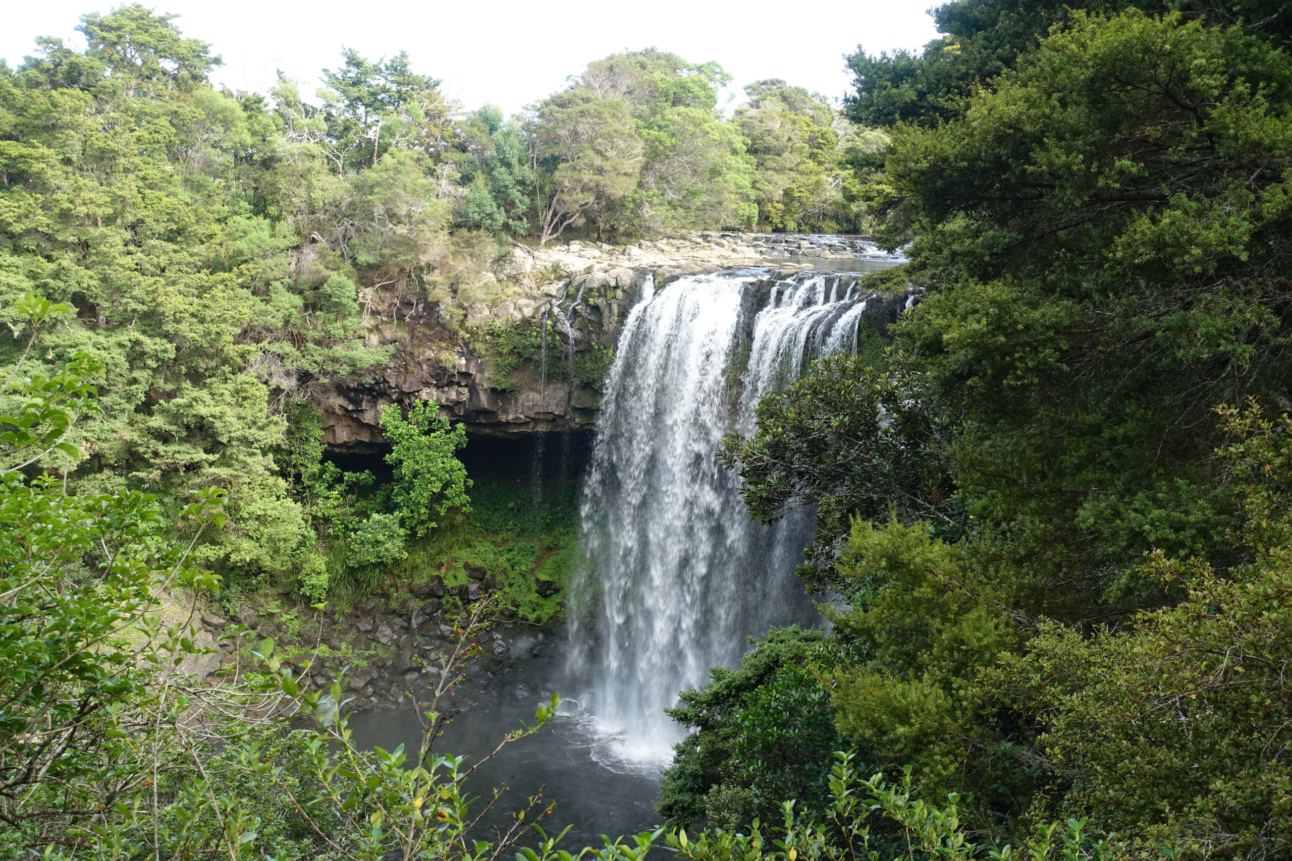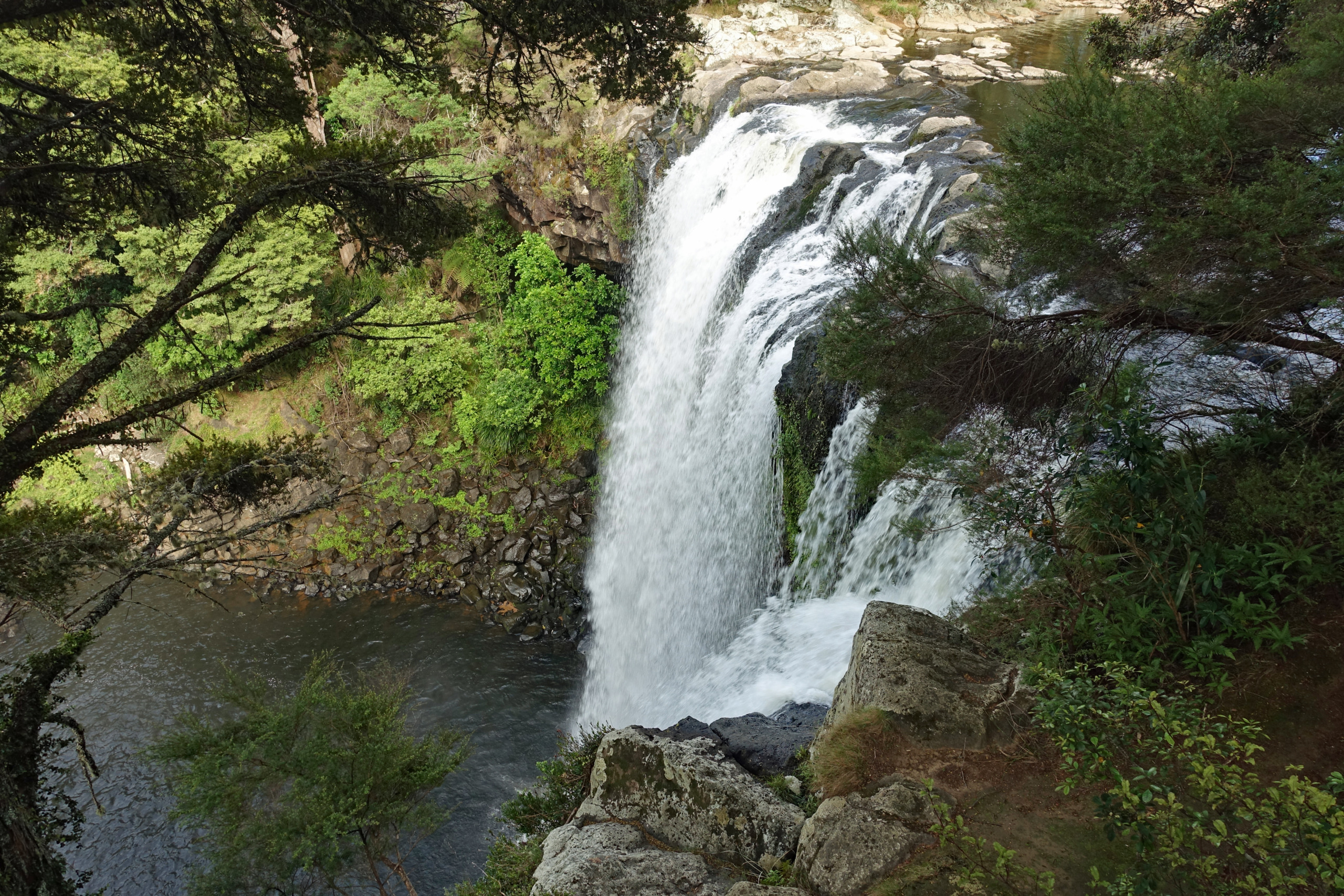 Waianiwaniwa (Rainbow Falls) is a 27-meter single-drop waterfall located on the Kerikeri River close to Waipapa. Unlike most New Zealand waterfalls formed by soft rock erosion, these falls plunge over a hard basalt ledge on to the softer mudstone beneath. There are three distinct viewpoints of the falls. Two provide top-down perspectives of the 27-meter drop, while the third is located near the base of the falls.