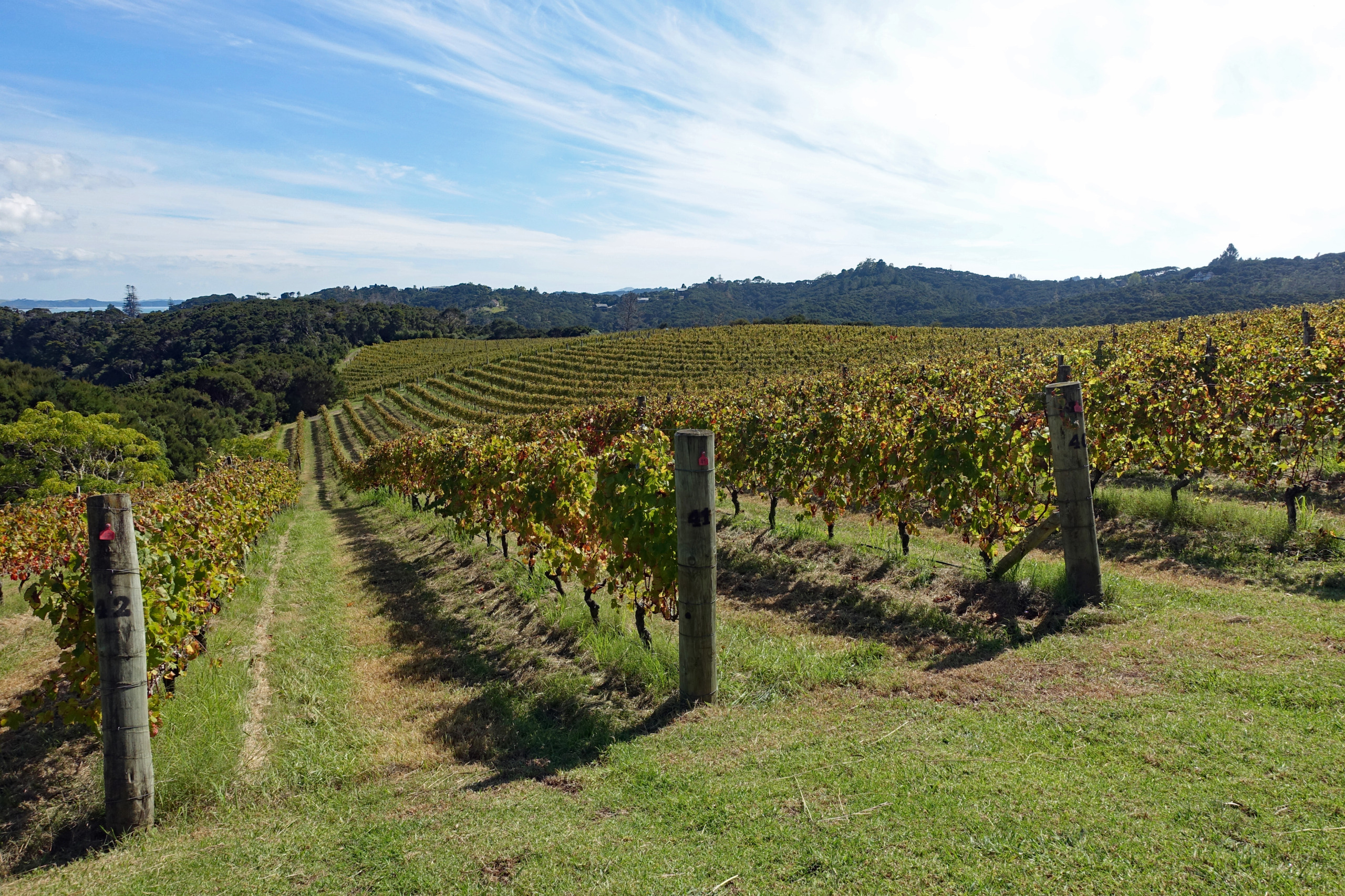 Just a stone’s throw from our cottage was Marsden Estate winery, a cornerstone of the Northland wine scene. Known for its collaborative spirit, the estate crafts labels for dozens of local growers alongside its own award-winning vintages. Since we prefer red wines over whites, we skipped the standard tasting flight and curated our own experience, selecting four distinct reds. We settled onto the vine-shaded terrace overlooking a private lake and ten acres of rolling vines, and by the end of the afternoon, two bottles emerged as our favorites: the Cavalli—a signature estate blend—and the Chambourcin, a fascinating French hybrid.