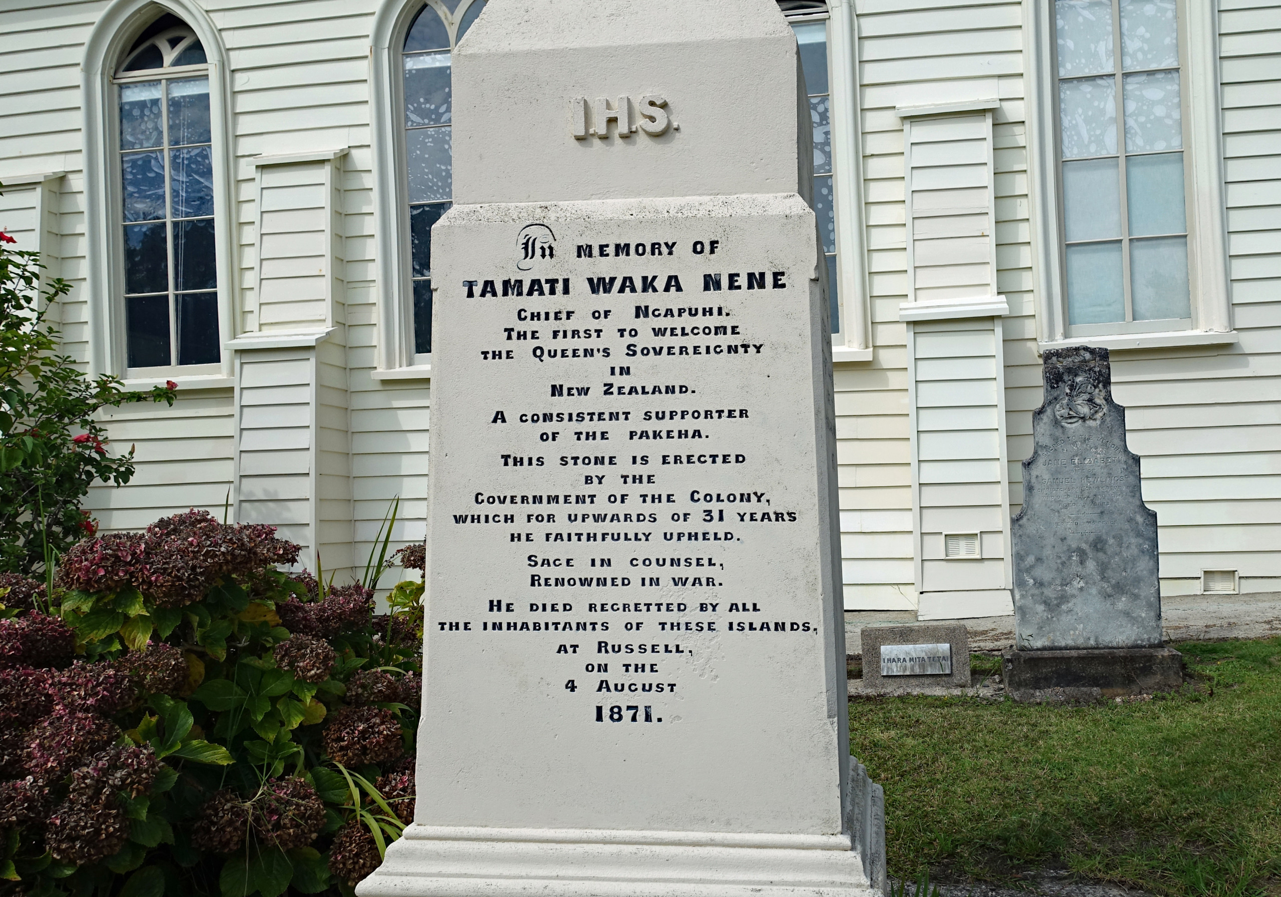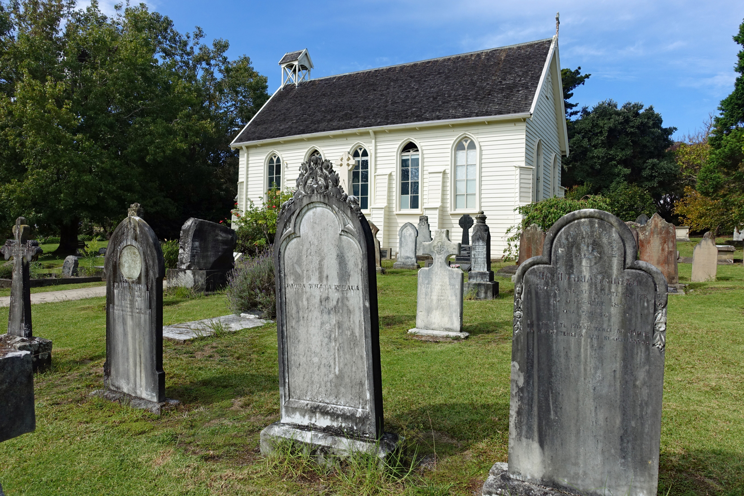 As we began the drive back to the ferry we spied a pretty church and a weathered cemetery enticing us in for a look. We had stumbled upon Christ Church, the oldest surviving church in New Zealand and one of the country’s most significant heritage sites. Completed in 1835, it has stood through the transition of Russell from a lawless whaling port to the serene seaside village it is today. Even Charles Darwin left his mark here; during his 1835 voyage on the HMS Beagle, he contributed to the church’s construction fund, though he famously grumbled about the town’s rowdy character at the time. The surrounding cemetery is as much of an attraction as the building itself, serving as a resting place for many notable figures from New Zealand’s early history. Wandering among the headstones we found the final resting palces of early settlers, mariners, and powerful Māori leaders. Most notably, we stood at the grave of Tāmati Waka Nene, the influential Ngāpuhi chief and key British ally whose signature on the Treaty of Waitangi changed the course of the nation. It was an interesting end to our day on the peninsula.